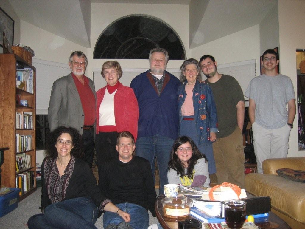 I am attaching a photo taken last month by my son Jim at his home when my sister Cathy and husband Dave were visiting. It is a very good picture I think of all of Jim's gang and we older generation.